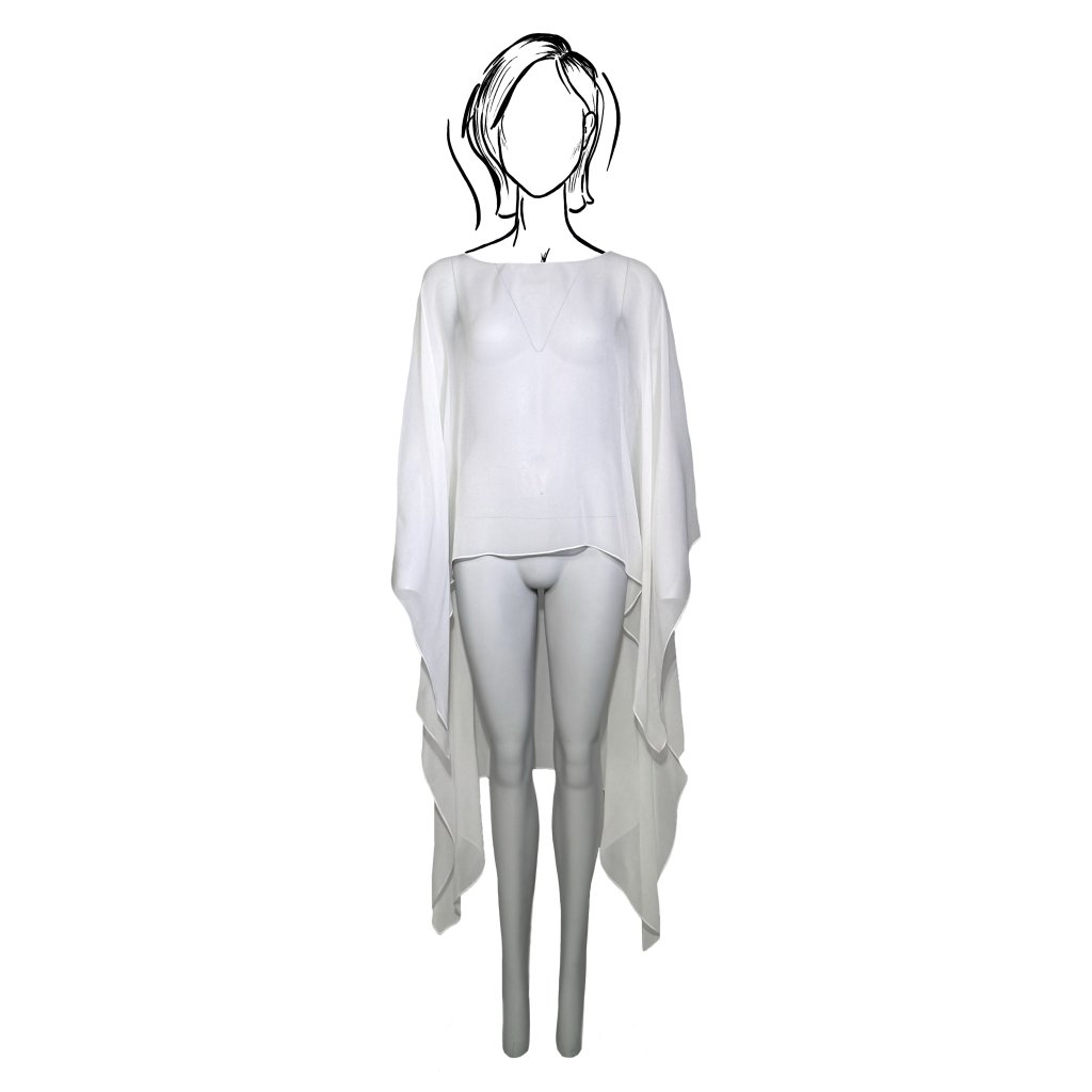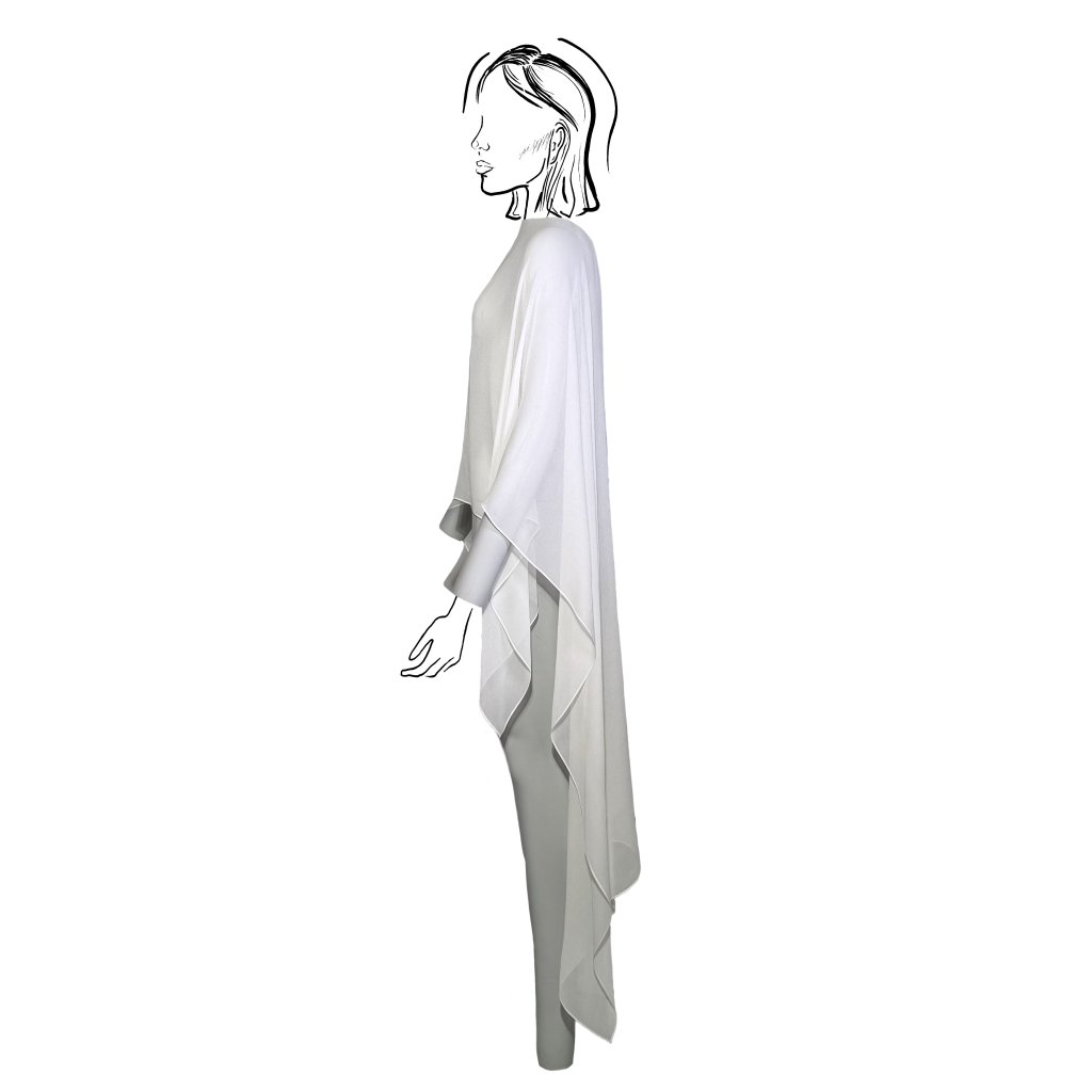 Tento asymetrický šifonový závoj je jemným, a přesto výrazným doplňkem pro jakýkoli outfit. Lze jej snadno přehodit přes top, halenku či šaty. Asymetrická délka v kombinaci s lehkým šifonovým materiálem se přirozeně vlní a při chůzi vytváří krásný pohyb, díky němuž outfit získává dynamiku a lehkost.