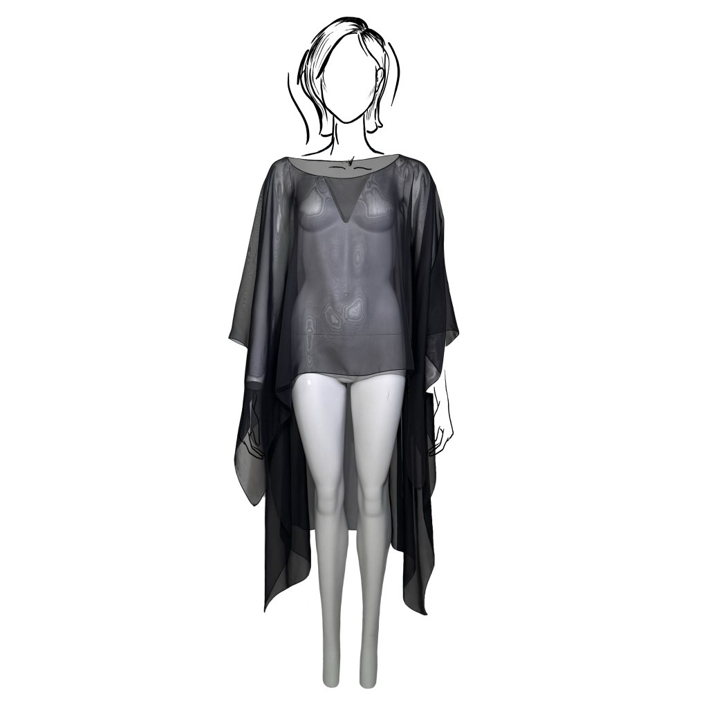Závoj je ideálním kouskem pro vrstvení – dokáže dodat dramatický akcent jednoduchým kombinacím, zjemnit strukturované siluety nebo propojit různé textury v harmonický celek. Je určen pro ženy, které chtějí do svého stylingu vnést pohyb, originalitu a nadčasovou eleganci.