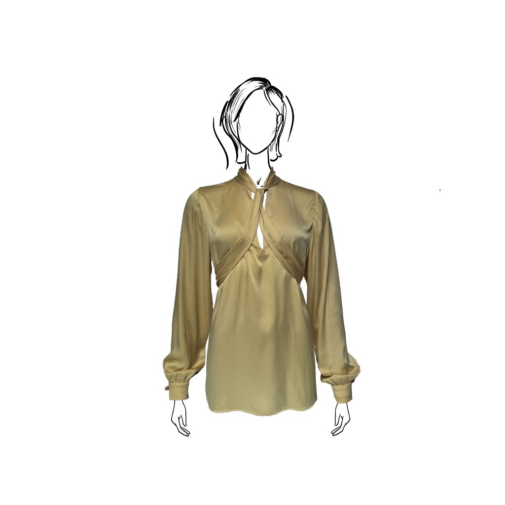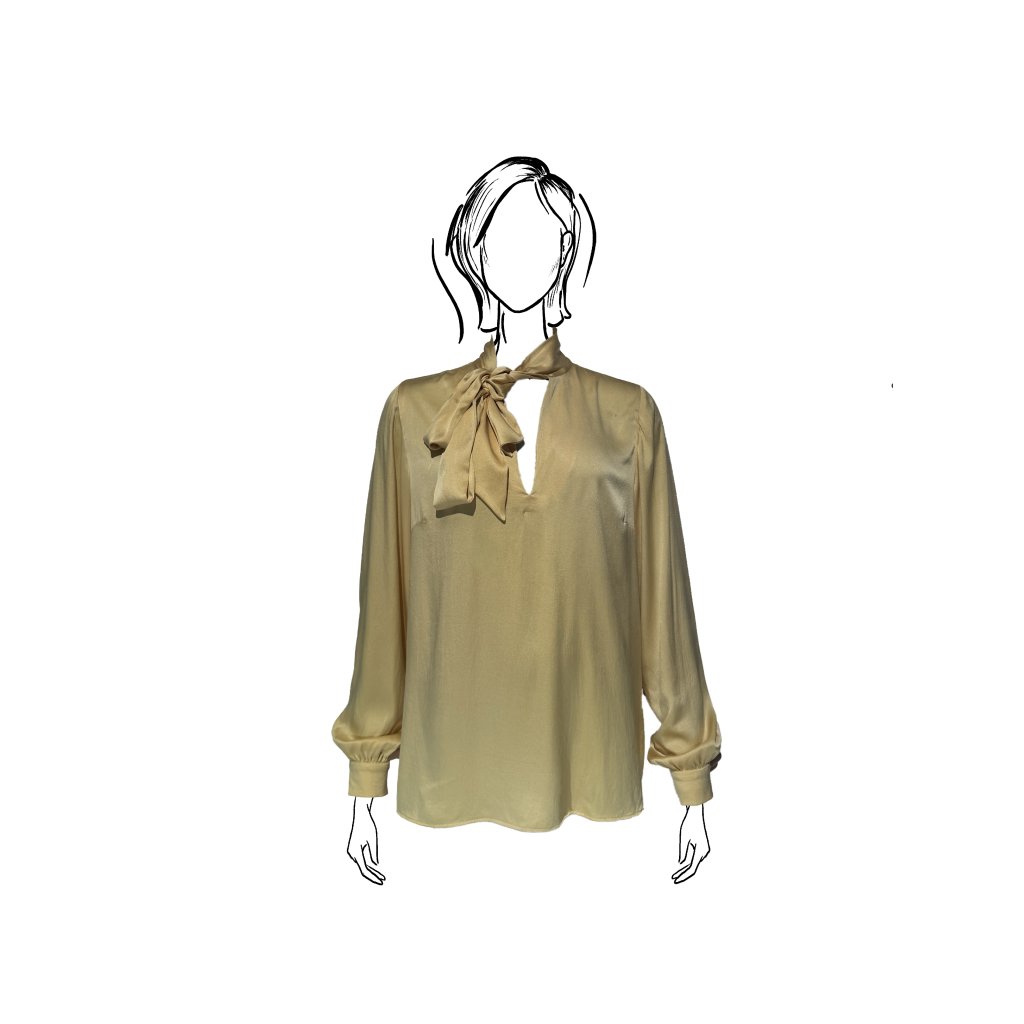 Jedna z našich nejúspěšnějších halenkových modelu. Halenka se díky kvalitnímu saténovému hedvábí a splývavému střihu lehce přizpůsobí postavě a vytváří elegantní siluetu, která působí přirozeně, jemně a vždy dokonale žensky.