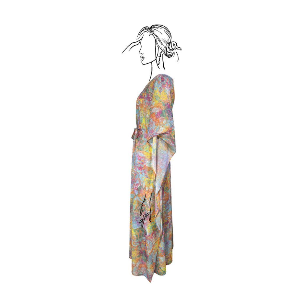 Ideálně jej můžete "hodit na sebe" na plavky, když ležíte u bazénu nebo na večeři na dovolené. Je vyroben z lehké směsi s metalickými Lurex vlákny, ve volném střihu, který můžete svázat v pase tkaničkou. Rozparky po stranách umožňují jednoduchý pohyb a opticky Vám prodlouží nohy. Noste jej velkým slaměným kloboukem a pantoflemi a určitě nezapomeňte na naši extra velkou designovou TERRA osušku!