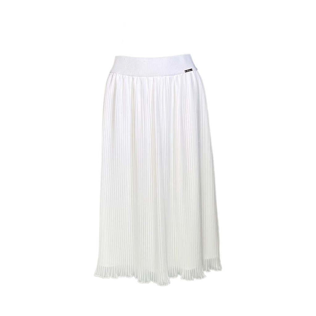 Plisovaná sukně s pružným pasem nabízí pohodlí a variabilitu.