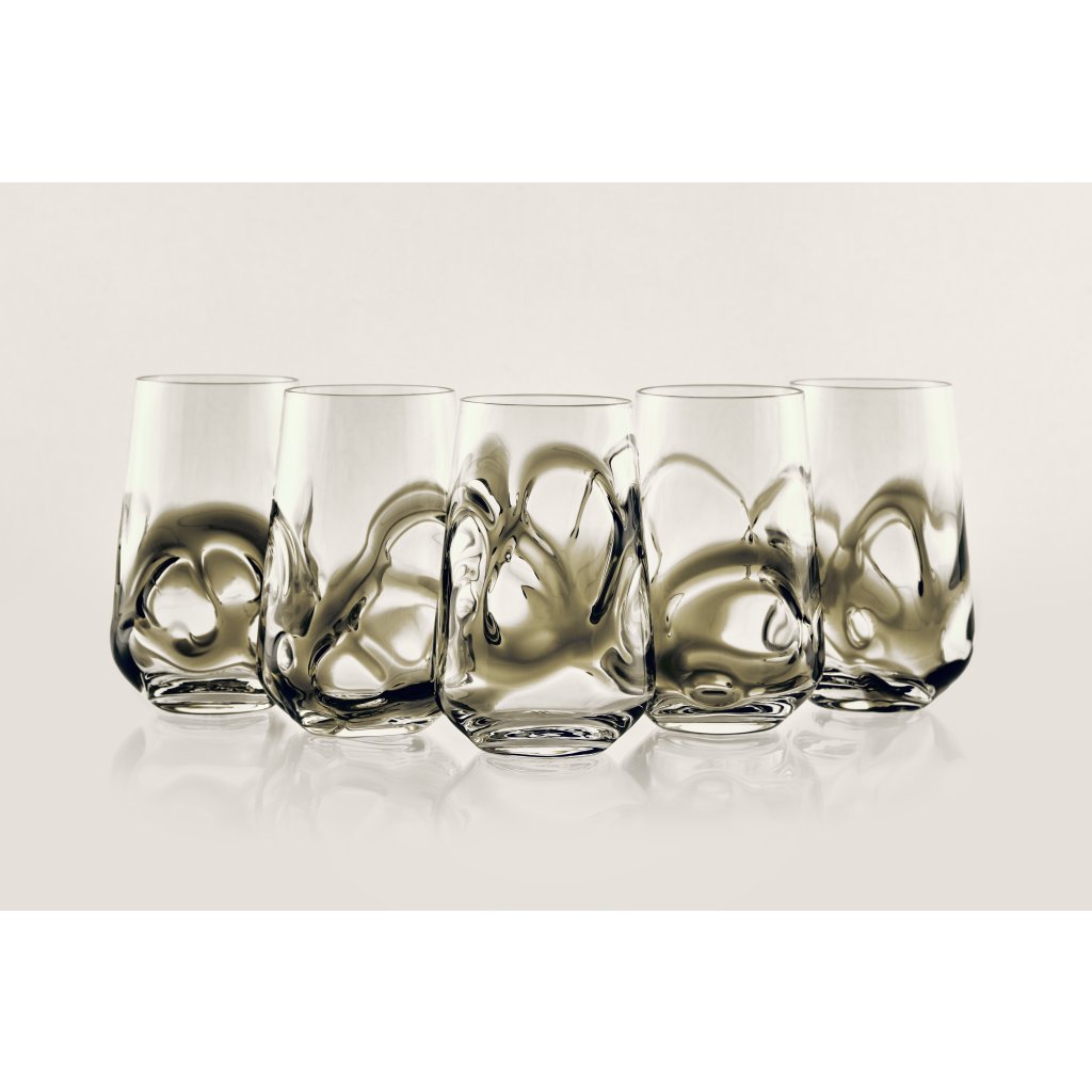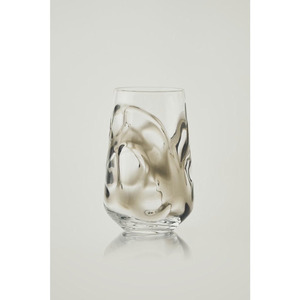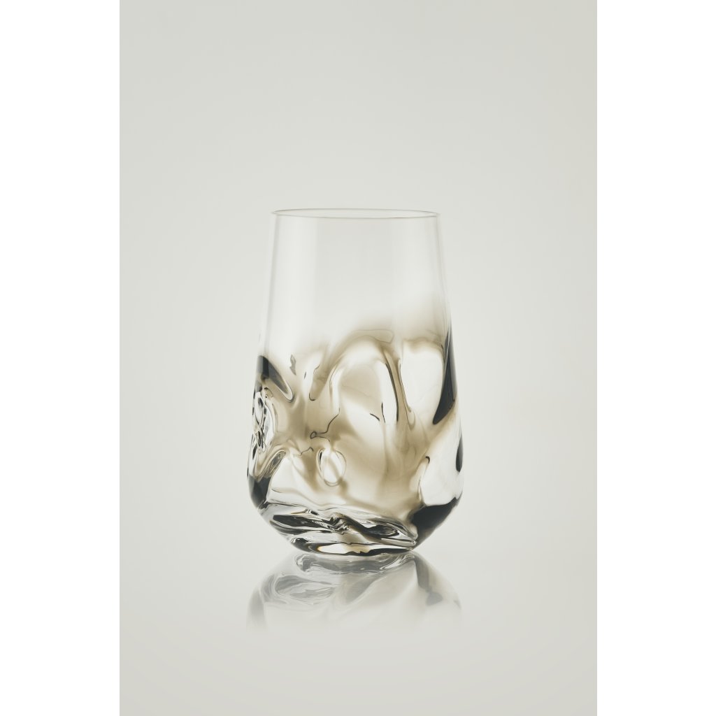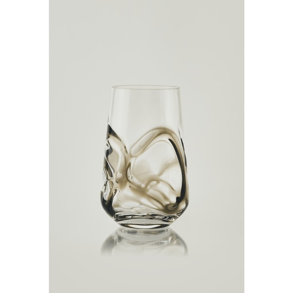 Dýmově šedé sklo v kombinaci s povrchem skleničky vytváří nový zážitek