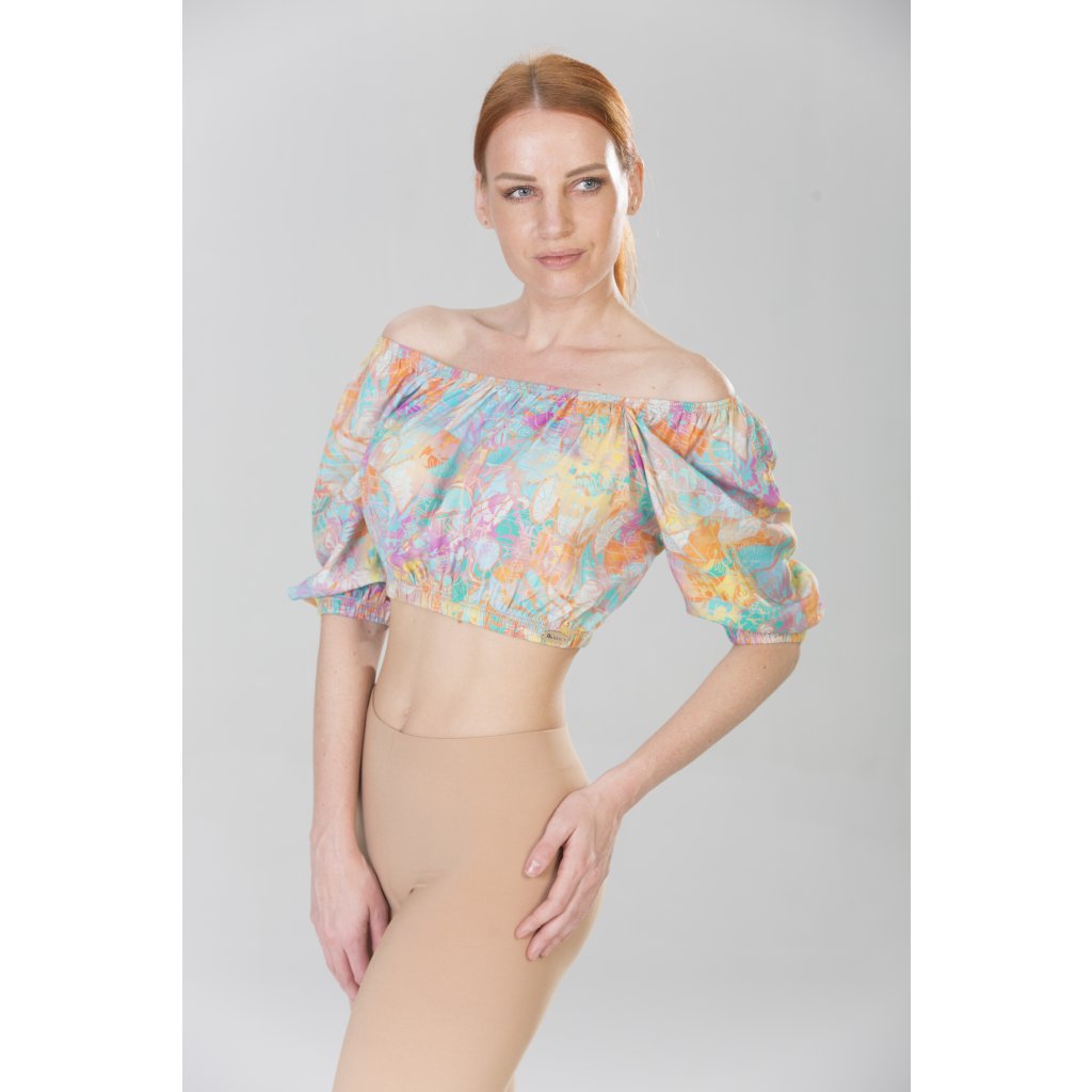Tento zkrácený top je vyroben ze 100% recyklovaného Tencel materiálu s JK Klett TERRA potiskem. Navržen v jemně volném střihu se zkrácenou délkou a gumičkou po spodním obvodu i po obvodu rukávů, co mu ještě přidává na hravém vzhledu. Vytvořte si sladěný look v kombinaci s JK Klett dlouhou hedvábnou sukní.